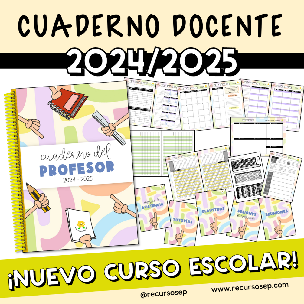 Si hay algo que destaque en mi blog justo antes de llegar septiembre, eso es el cuaderno de profesor. Por séptimo año consecutivo, desde que obtuve mi plaza en 2018, os comparto de manera gratuita mi cuaderno del profesor. Siempre os ha gustado mucho y me consta que lo utilizáis. Además, lleváis tiempo preguntándome si este nuevo curso 2024/2025 también lo ibais a tener disponible... ¡AQUÍ ESTÁ EL RESULTADO!