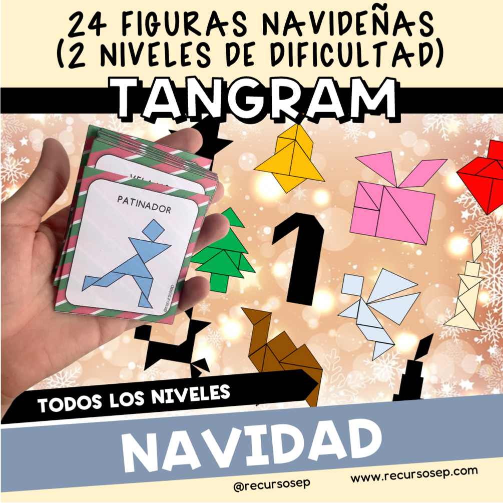 En esta entrada os comparto un tangram navideño para imprimir y recortar, junto con un conjunto de 48 tarjetas con figuras para jugar. Este recurso incluye: